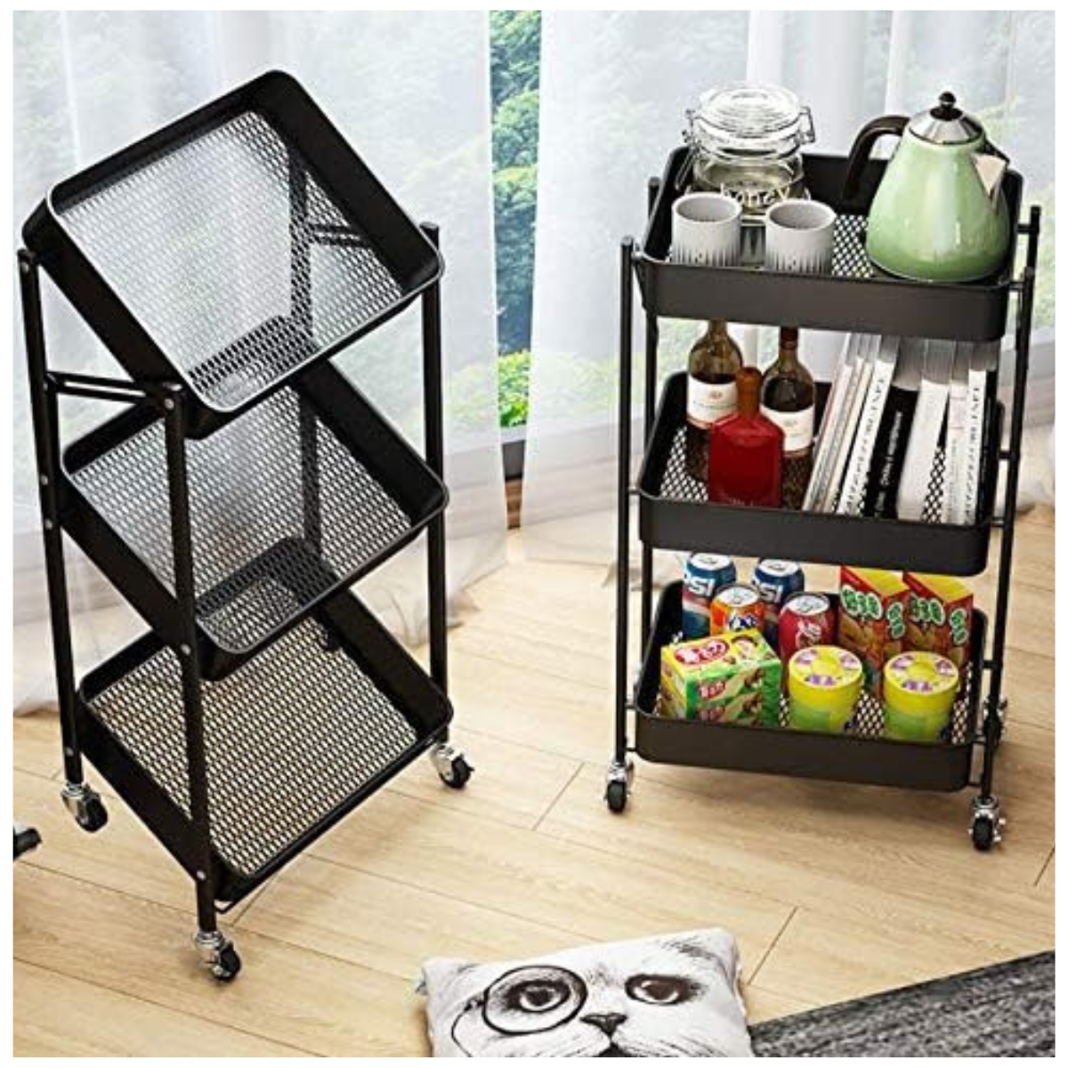 - Plegado Práctico: Con un mecanismo de plegado paralelo que permite ajustar el ángulo libremente entre 90° y 180°, este carrito se pliega fácilmente para un almacenamiento compacto cuando no está en uso. Este diseño ingenioso te permite ahorrar espacio y adaptarlo a tus necesidades específicas de almacenamiento.