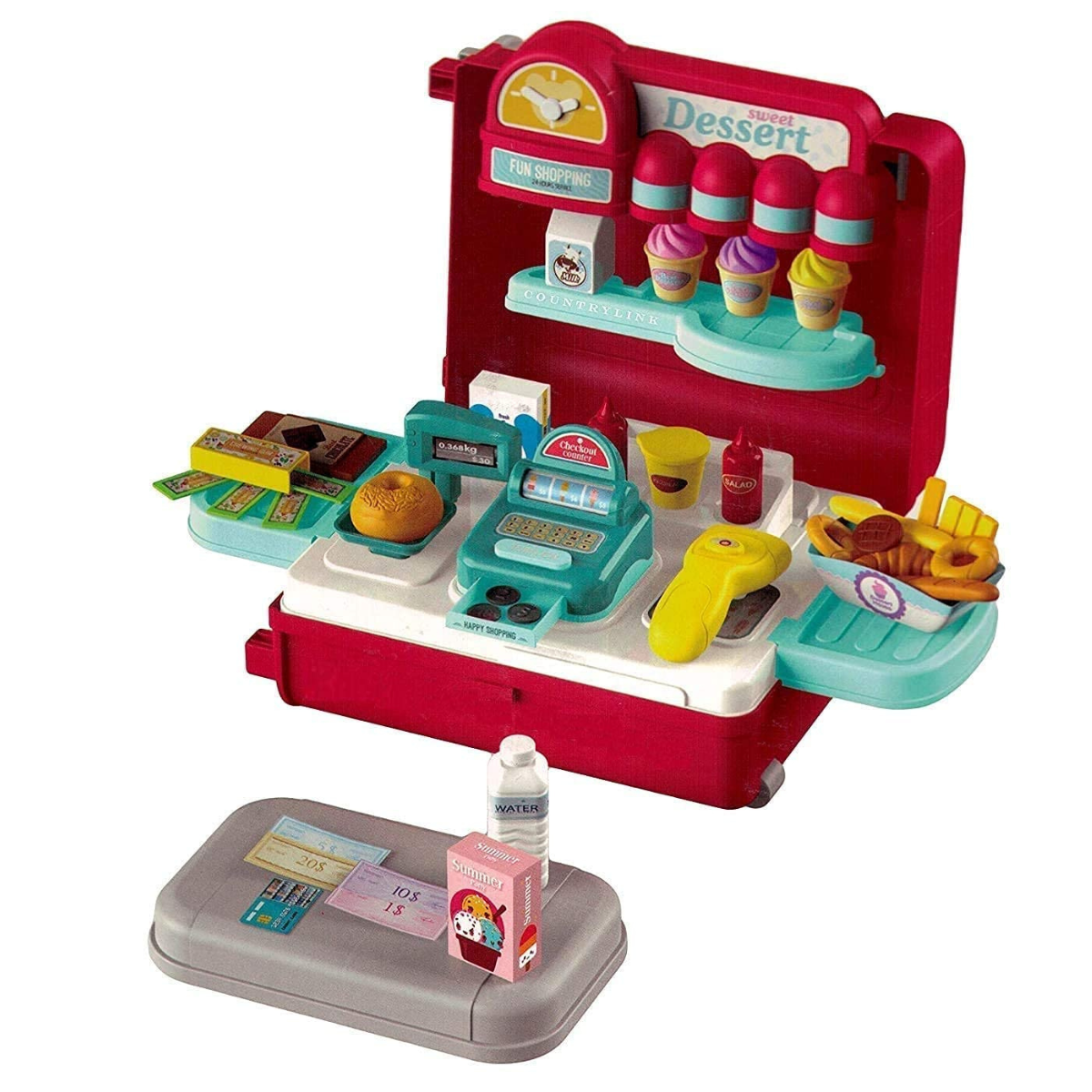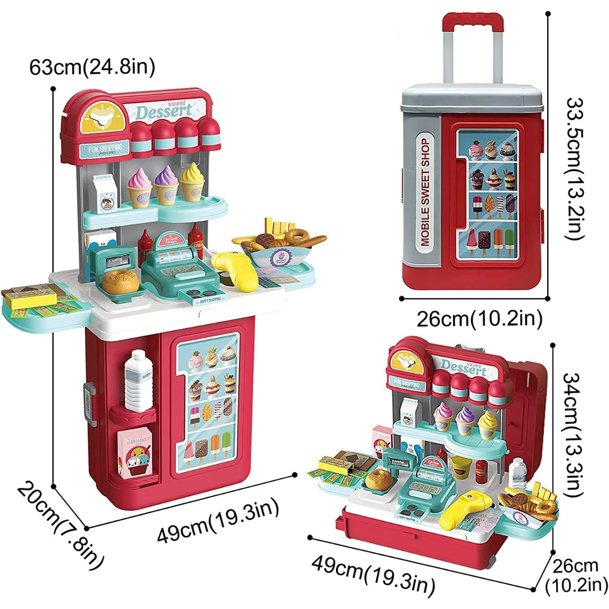 ¡Construye tus sueños y despierta la imaginación de tus pequeños! La Maleta Juguete Heladería Sweet Dessert se transforma en una mesa de juegos llena de color, donde cada niño puede crear su propio mundo de postres y diversión.