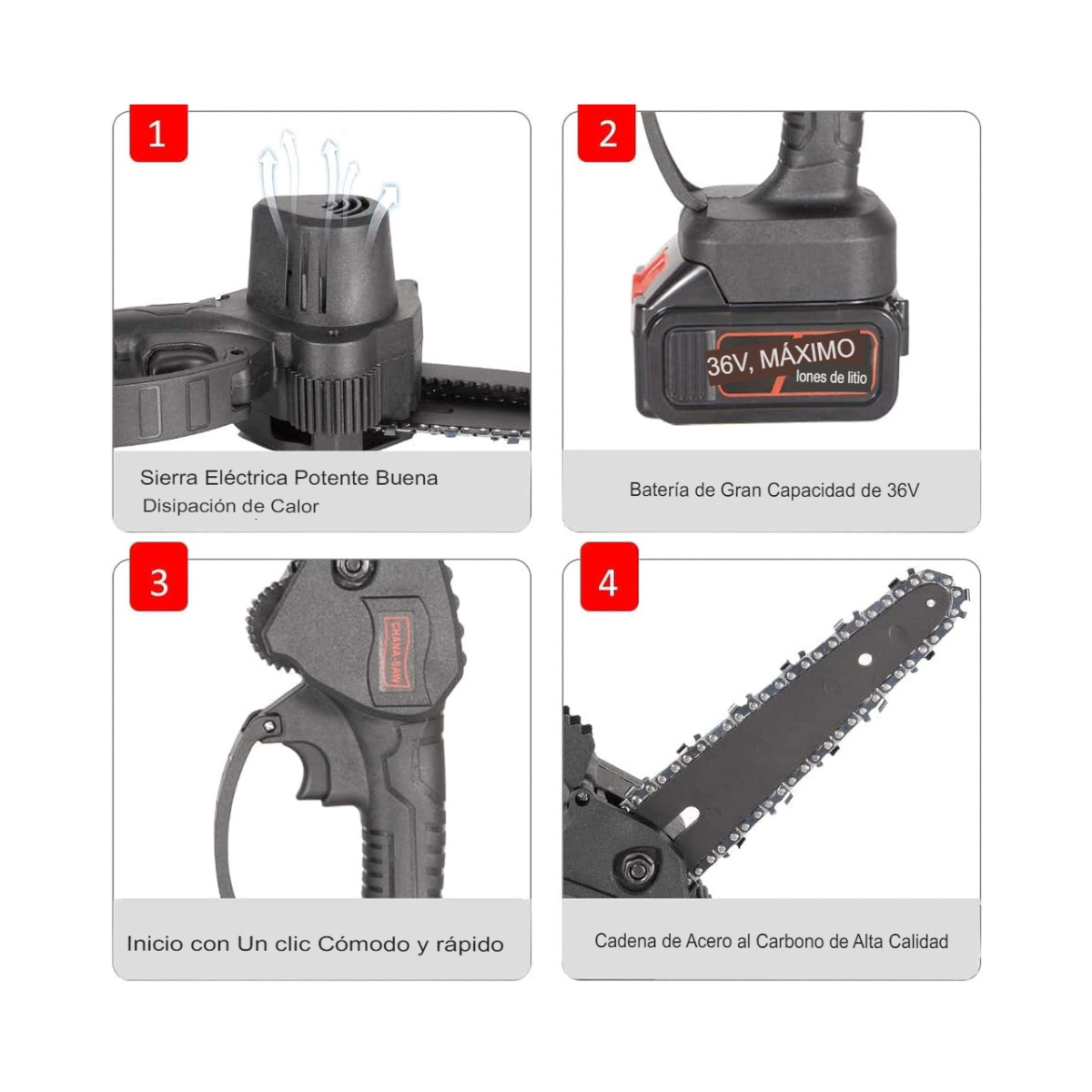 👉 ¡Dile adiós a las motosierras pesadas y con cables! Descubre la libertad de trabajar con una herramienta compacta, eficiente y lista para todo.