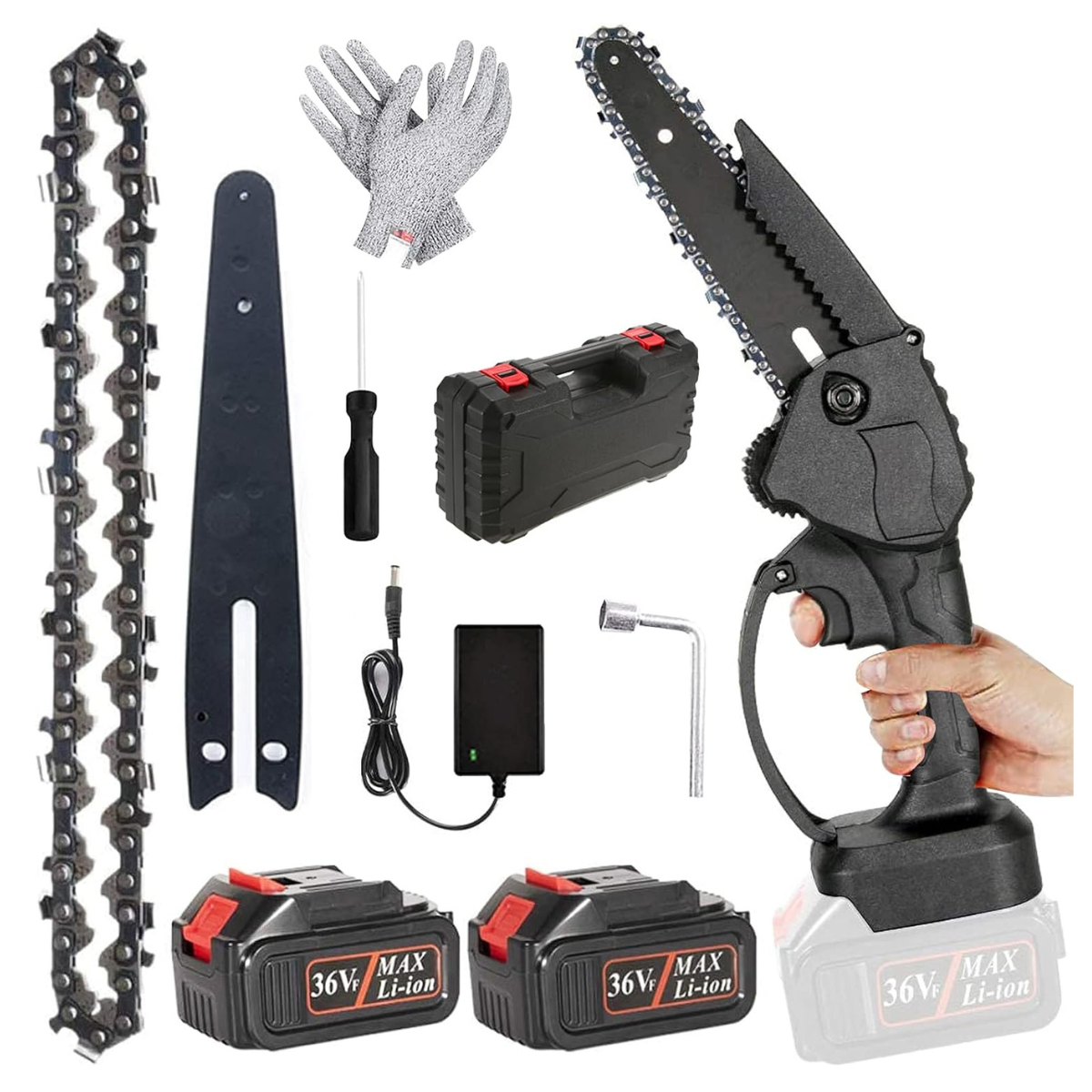 Haz que la jardinería sea más fácil, rápida y cómoda! Nuestra mini motosierra eléctrica de 6 pulgadas está diseñada para quienes buscan potencia y practicidad en un solo equipo. Con su batería de 36V y 2*3000 mAh, tendrás la libertad de moverte por todo tu jardín sin cables ni limitaciones.